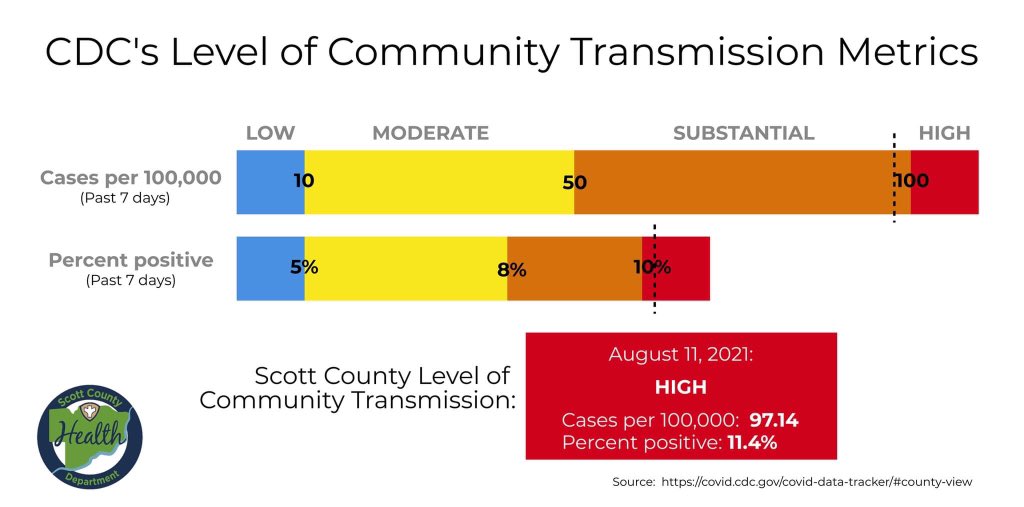 --Twice as likely to put infected people in the hospital. Exposure is defined as being in a place for longer than 10 minutes and inability to social distance from others. The Scott County Health Department and partners of the QC COVID-19 Coalition are sharing information on our website COVID-19 Vaccine clinic page social media pages and with local media community partners and healthcare providers.