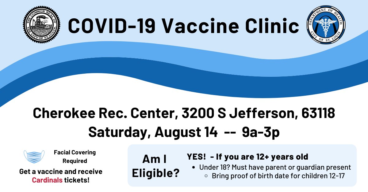 Louis will need to be vaccinated against COVID-19 or face weekly testing from the city health. A schedule of free COVID-19 vaccine clinics in the St. Louis City and County public health leaders are preparing for the possibility of mass vaccination events andor clinics to meet a new need for the COVID-19 vaccine.
